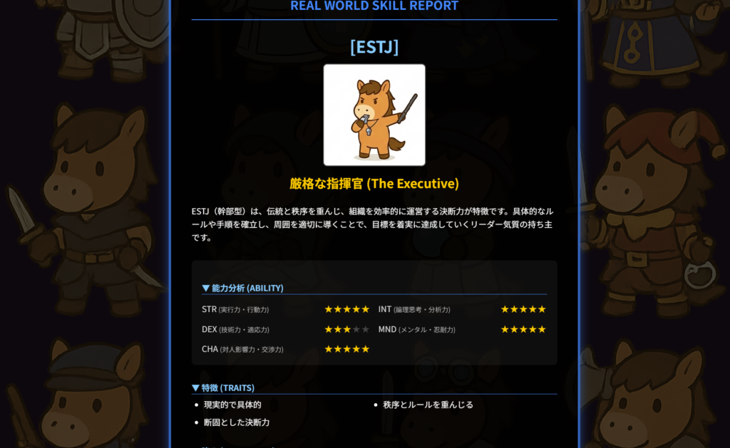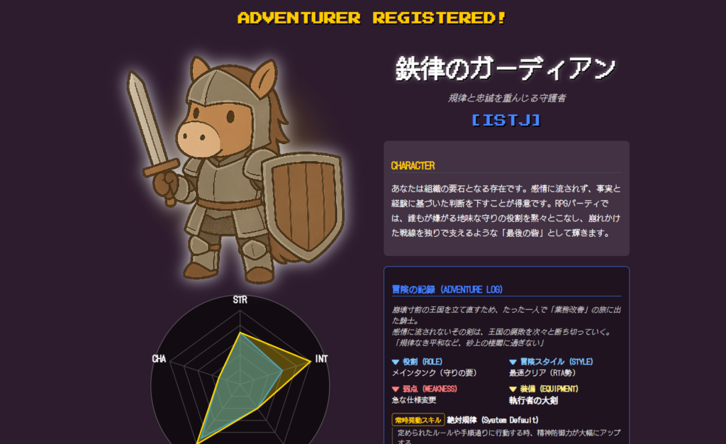 『MBTI RPG』は、16タイプの性格診断とRPGの世界観が融合した、新感覚の診断ゲームです。